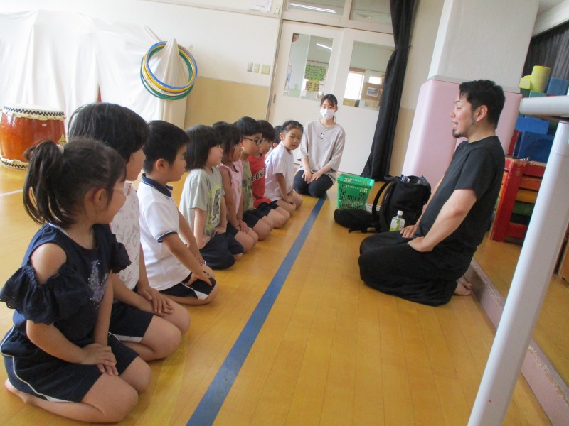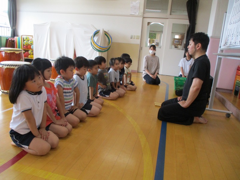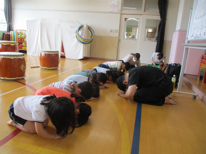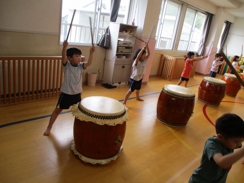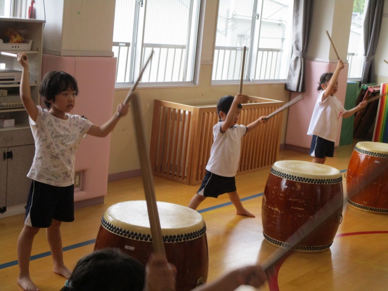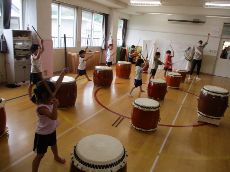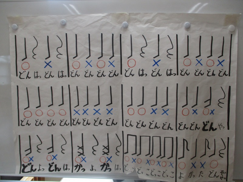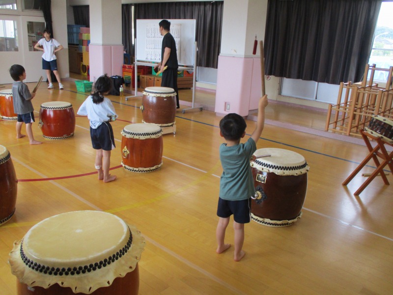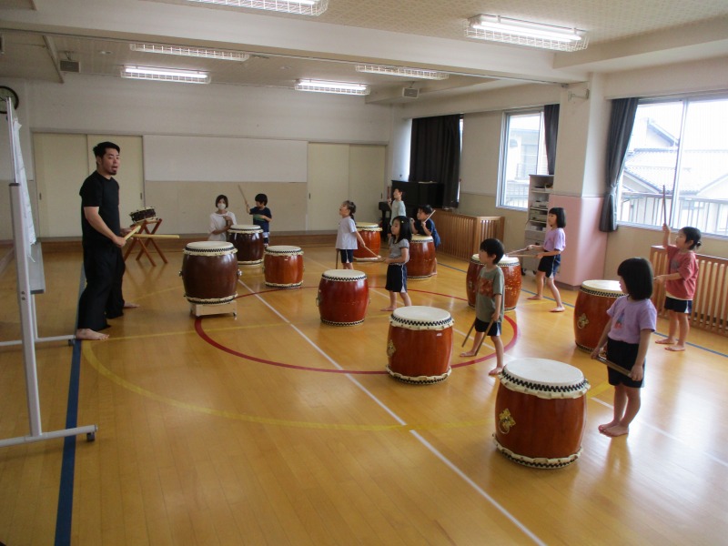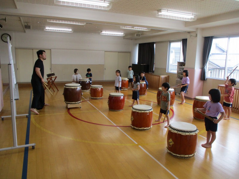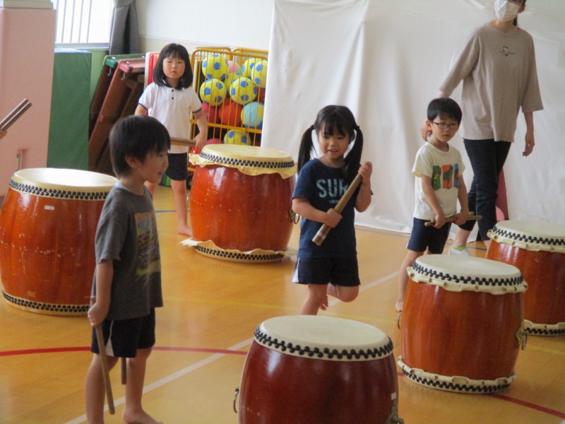 今回のどんどんたいむは、曲を全部一通り叩いてみました。曲の中に「はっ」と大きな声を出すところがあるのですが、じゅんや先生の声が大きいのを聞いて、子どもたちも負けじと元気な大きな声を出していました。曲のリズムも覚えてきた子が多く音が揃ってきていました。どんどんたいむが始まる前と終わりに必ずご挨拶をします。毎回、挨拶は大事ということを学んでいる子どもたちです。回を重ねる毎に、綺麗な挨拶になっています。今後も、どんどんタイムの様子を発信していきたいと思います。