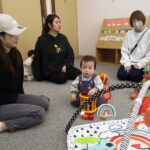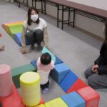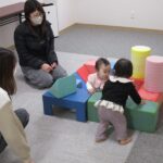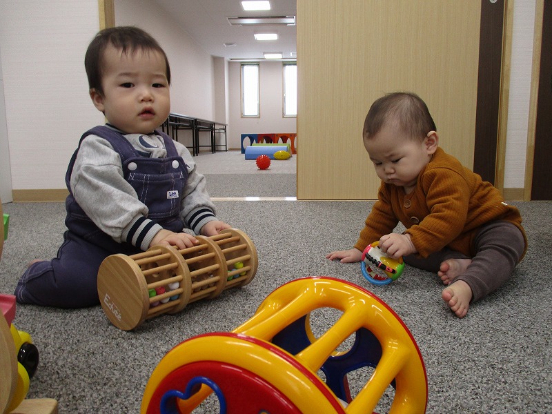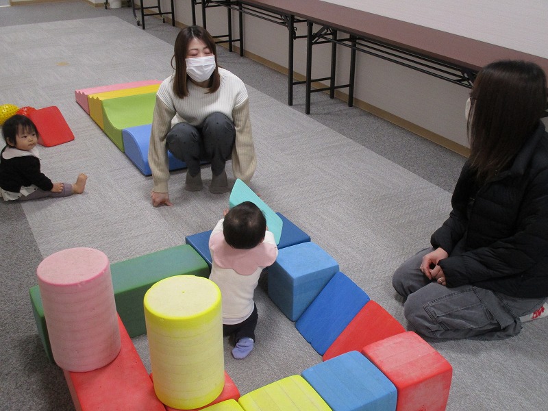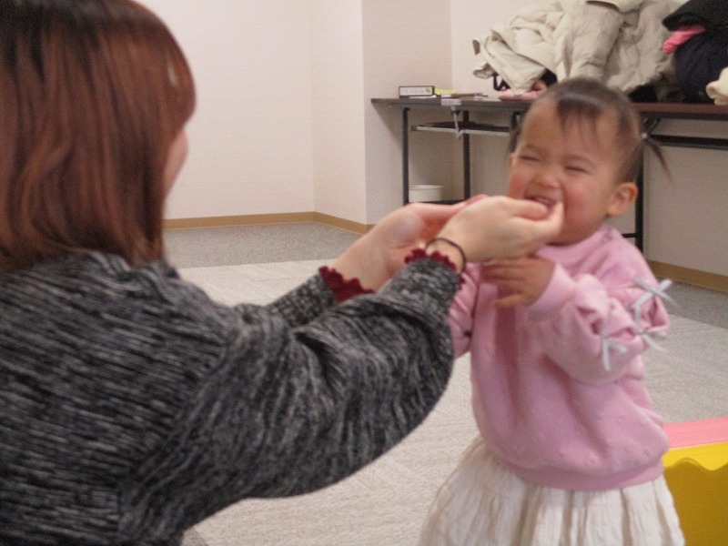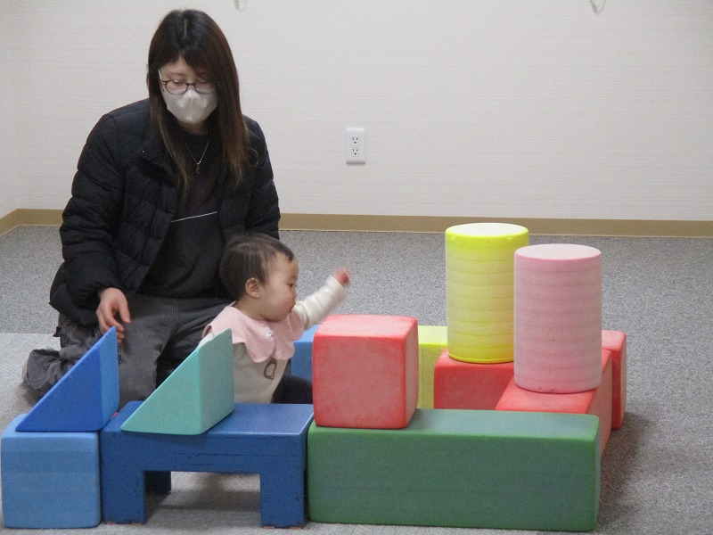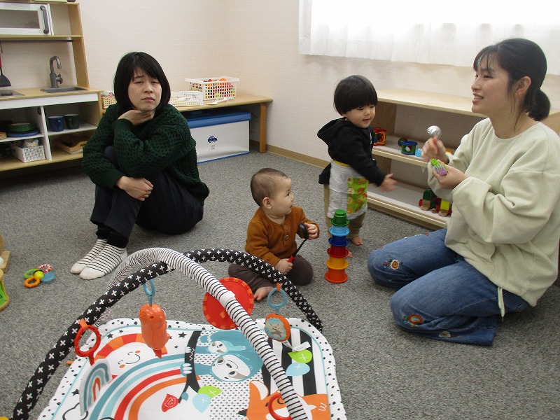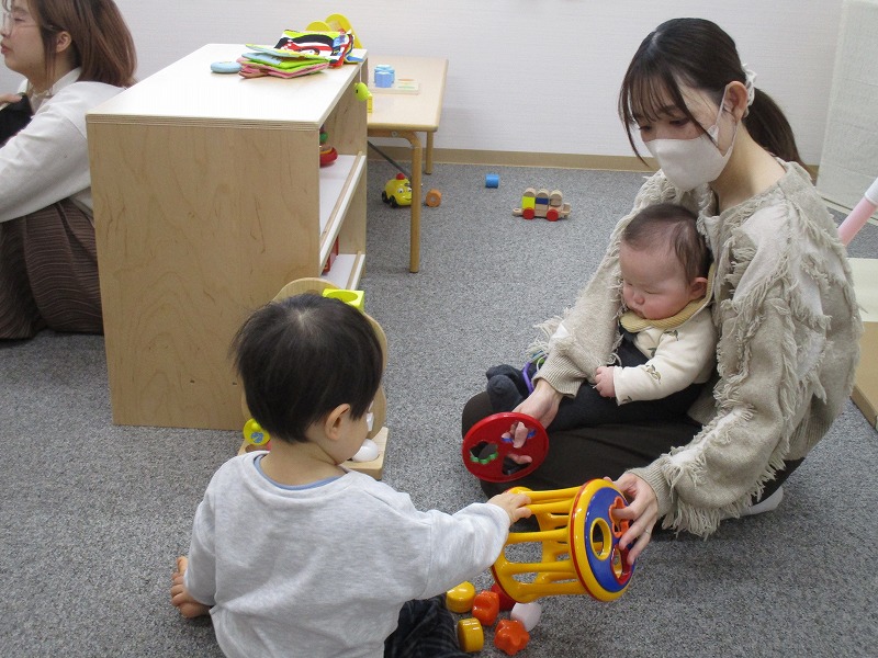 入室時は親子さんとの間隔がありますけど、徐々にお子さんを介して距離が縮まりママさん同士楽しそうにお話しておりました