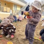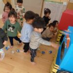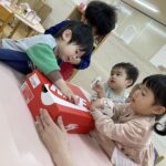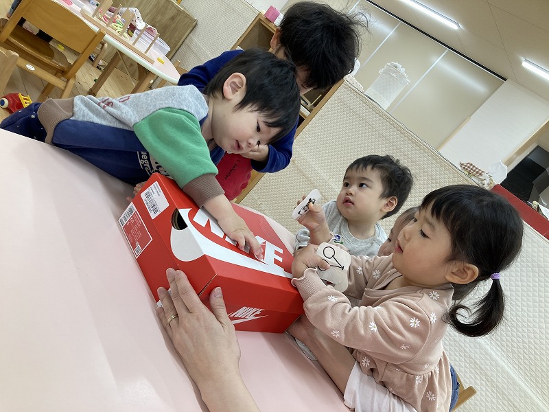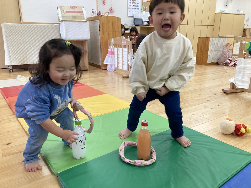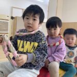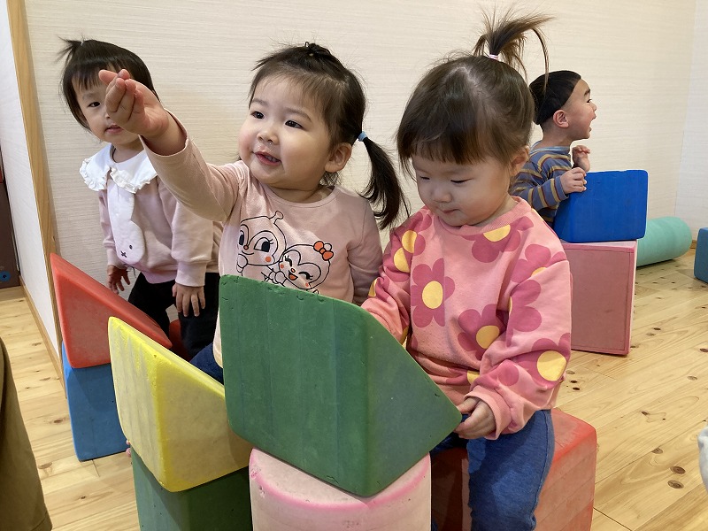日々の遊びの中で様々な経験を通して、やりとりしながら遊び方を変えて楽しんだり、名前を呼び合い会話も楽しむようになり成長と共に微笑ましく感じています。