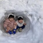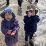 雪が降ってくると窓から嬉しそうに眺めていた子ども達。積もった雪を部屋に持ってくると「つめたーい」と話しながらも雪をごはんに見立てて遊んだり、徐々に溶けていく様子を見ていました。外に出ると雪玉を作って投げたり、雪山を登ったりと冬ならではの事象を感じて楽しんでいました。